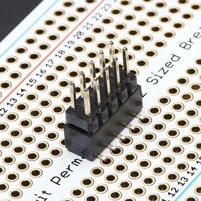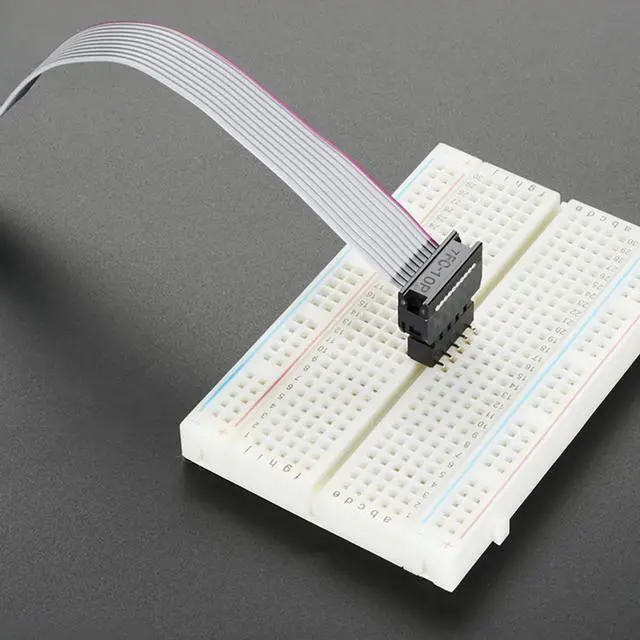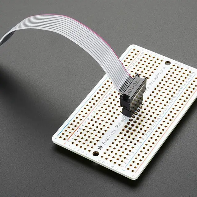 This little 2x5 (10 pin - 0.1 spaced) IDC Breadboard Helper is great in conjunction with any of our 10-pin IDC cables. It comes in two parts, a 'pin-through' socket and a male header. The socket straddles the center of a breadboard or Perma-Proto and then header plugs into the top of the socket. Since IDC cables are so standard, but a royal pain to use with breadboards, this is a good and cheap hack for prototyping. Works best when soldered in place. We have used these to prototype on a solderless breadboard but some customers report their breadboards don't play nice with the shorter pins so your mileage may vary