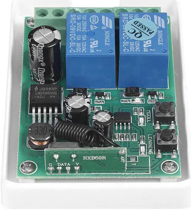 Press the learning button once, the indicator light flashes (into the learning state), press any button on the remote control, the indicator light flashes three times quickly, indicating that the No. 1 relay has learned successfully; press the learning button twice, repeat the above steps, and learn the No. 2 relay;
