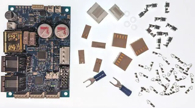 An advanced TMC2160A stepper driver: SPI controlled, can be run in open loop or closed loop mode. Maximum motor current 6.3A peak per phase (4.45A RMS).