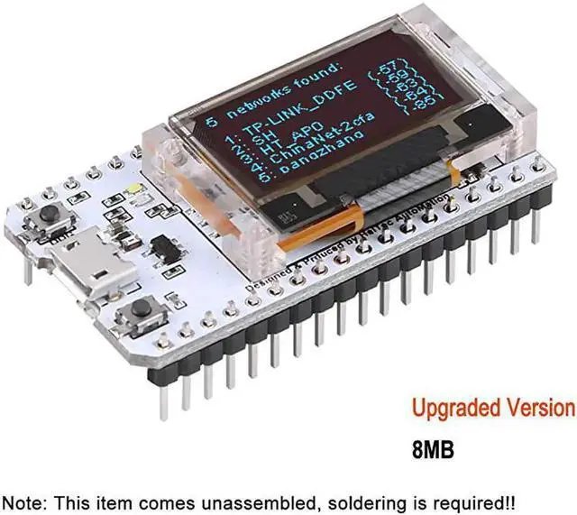 whiteDescription: WIFI Kit series is the new development of the cost-effective networking program, the main chip using Lexin ESP32, Tensilica LX6 dual-core processor, 240MHz, computing power up to 600DMIPS, chip built-in 520 KB SRAM, 802.11 b / g / N HT40 Wi-Fi transceiver, baseband, protocol stack and LWIP, integrated dual-mode Bluetooth (traditional Bluetooth and BLE low power Bluetooth). Onboard 8MByte(64M-bit) Flash, Wi-Fi antenna, 0.96 -inch blue OLED display, lithium battery charging circuit and interface, CP2102 USB to serial chip, the perfect support for