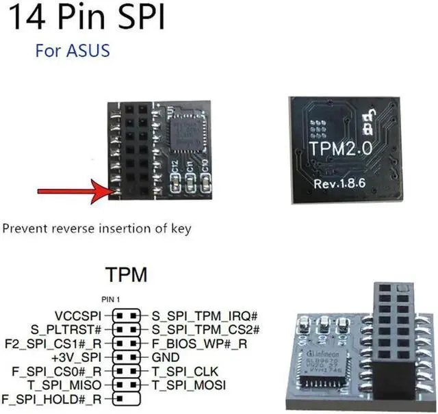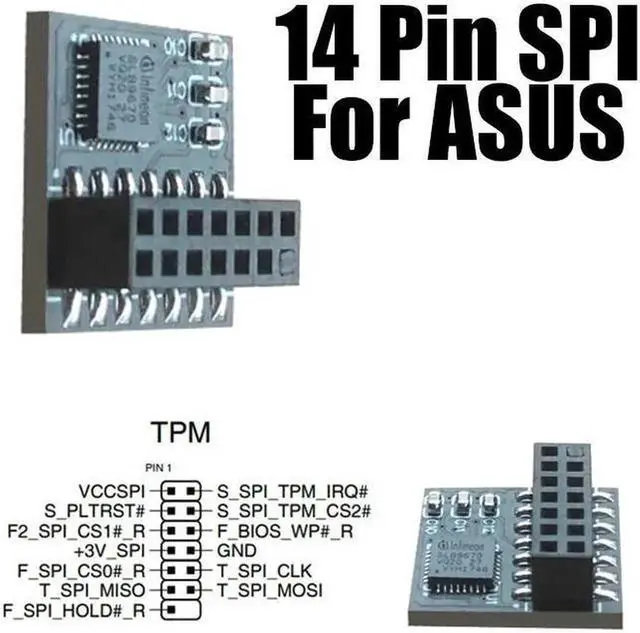 This is a TPM 2.0 module which is required for Windows 11 use for ASUS SPI 14PIN