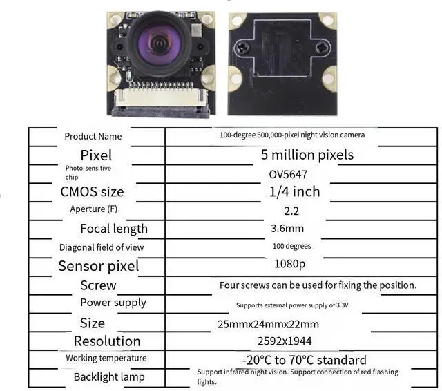 Raspberry Pi 5 CSI camera module, OV5647 IMX219 sensor camera, visual recognition camera 5 million pixel night vision camera 100degrees
