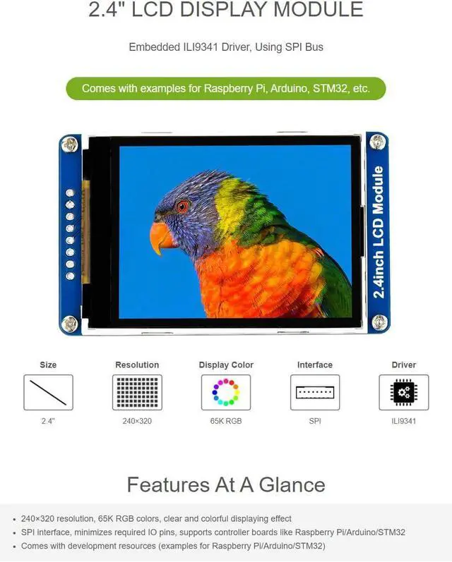 2.4" LCD DISPLAY MODULE Embedded ILI9341 Driver, Using SPI Bus