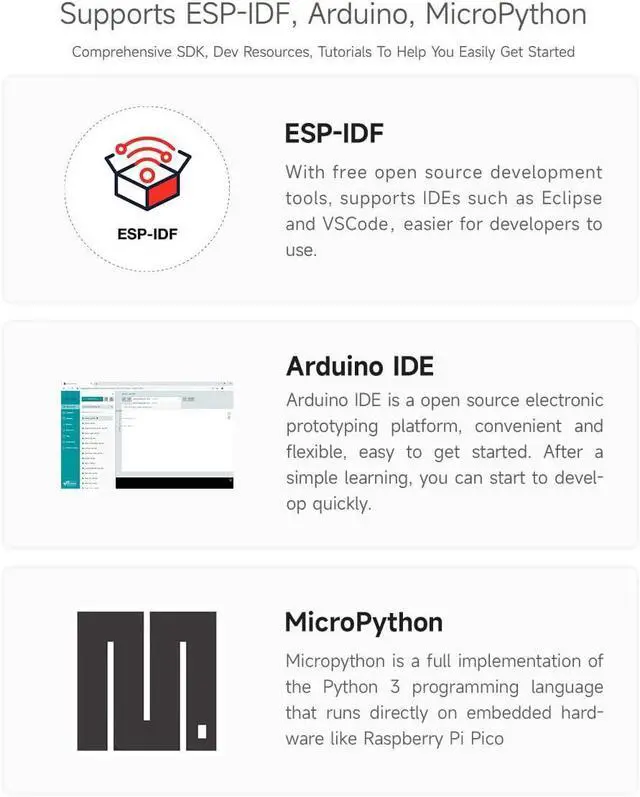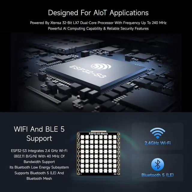 Adapting Dout pin for extending RGB matrix. 17 × multi-function GPIO pins. Rich peripheral interfaces for achieving various functions flexibly