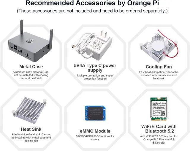 [Support Open Source]: Orange Pi 5 Plus single board computer can build computer, wireless server, games, music sounds, video and speaker. Orange Pi 5 Plus development board can run Orange Pi OS(Droid)/Ubuntu/Debian/Armbian/Linux/Android 12 OS.