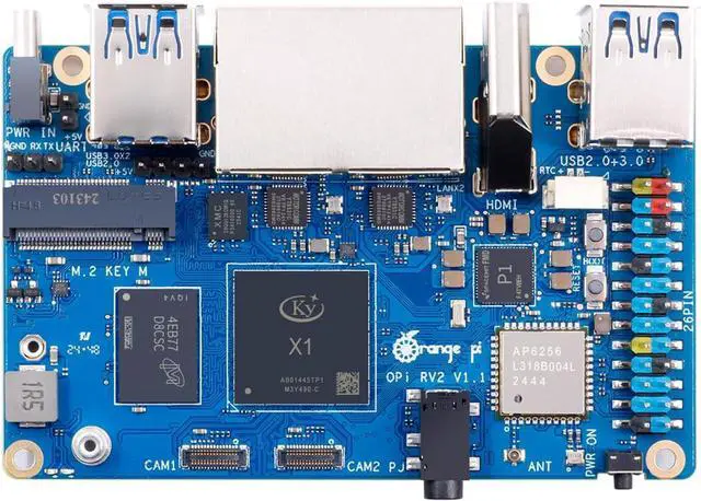 [High-Performance RISC-V Development Board]: Orange Pi RV2 features an octa-core RISC-V processor with integrated AI acceleration. It delivers 2.0 TOPS AI performance, with single-core CPU performance surpassing ARM A55 by over 30%.