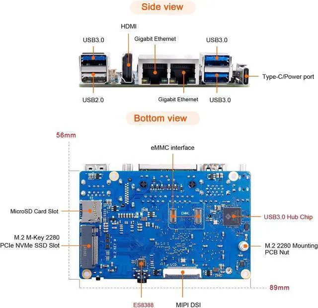 [Flexible Memory & Storage Options]: Equipped with 2GB/4GB/8GB LPDDR4X RAM and supports optional eMMC modules (32GB/64GB/256GB) for enhanced storage flexibility.