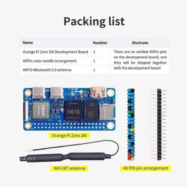 [Practical Design]: Despite Orange Pi Zero 2W has only a small size of 30mmX65mmX1.2mm, but it is equipped with 2*USB 2.0, 1Micro HDMI, 1*MicroSD card slot, 1*24 pin functional interface, 1*40 pin headers.