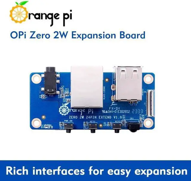 [Enhanced Connectivity and Functionality]: Through a 24-pin functional interface, this Orange Pi expansion board allows the Orange Pi Zero 2W to be extended with USB 2.0, 100M Ethernet, IR receiver, audio output, TV-out, and a power button.