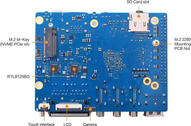 [Abuandent Interfaces]: Orange Pi 5 Plus development board provides abundant interfaces, including 2*HDMl output ports, 1*HDMl input port , 2*PCIe extended 2.5G Ethernet ports, 1*M.2 M-Key slot (supports installation of NVMe SSDs), and 1*M.2 E-Key slot (supports Wi-Fi 6 and Bluetooth modules). In addition, Orange Pi 5 Plus has 2*USB 3.0, 2*USB 2.0, and 2*Type-C (one of which is a power connector).