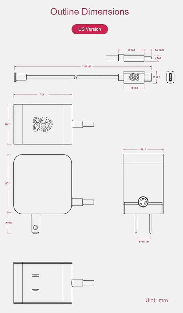 Official 27W USB Type-C Power Supply for Raspberry Pi 5