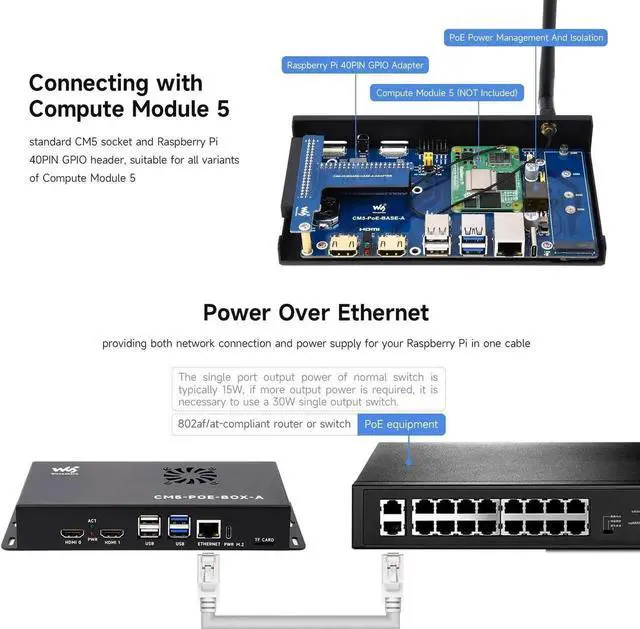Standard CM5 socket and Raspberry Pi 40PIN GPIO header suitable for all variants of Compute Module 5
