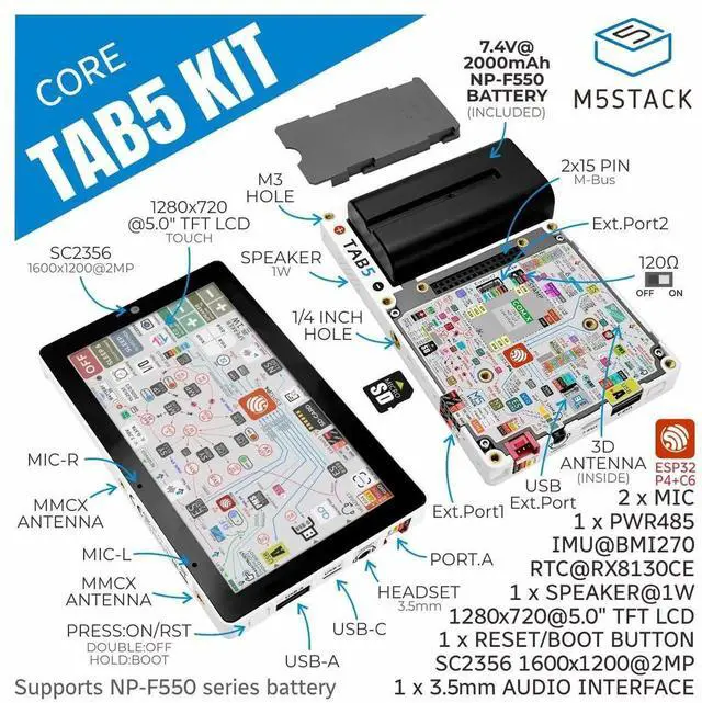 M5Stack Official Tab5 IoT Controller/Development Kit (ESP32-P4) -with Battery