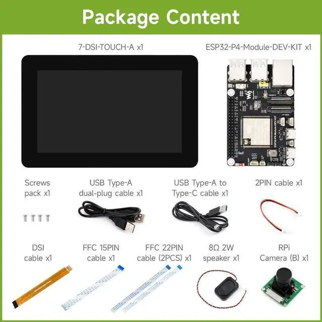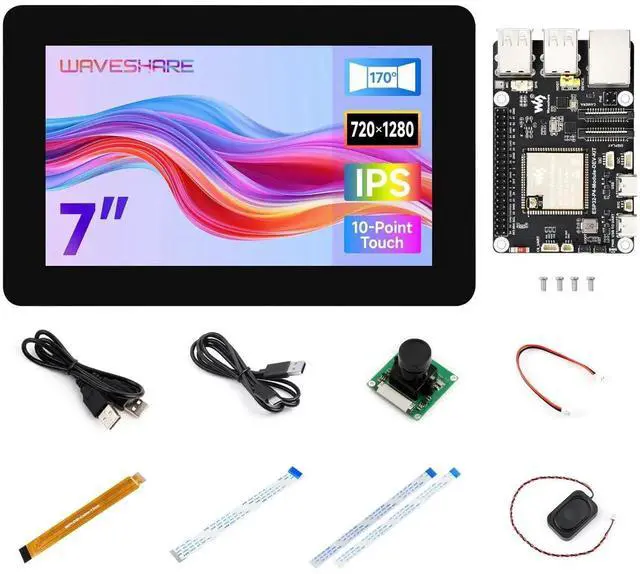Waveshare ESP32-P4 High-Performance Dev Board, ESP32-P4 & ESP32-C6, Supports Wi-Fi 6 & Bluetooth 5/BLE, Comes with 7inch DSI LCD, RPi Camera (B) & Accessories (11 Items)