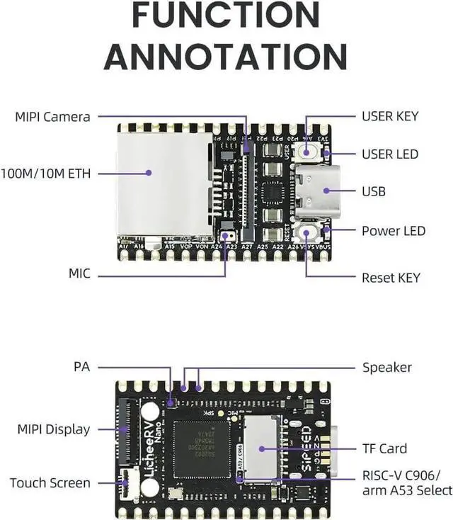 Large core: 1GHz RISC-V C906 / ARM A53;