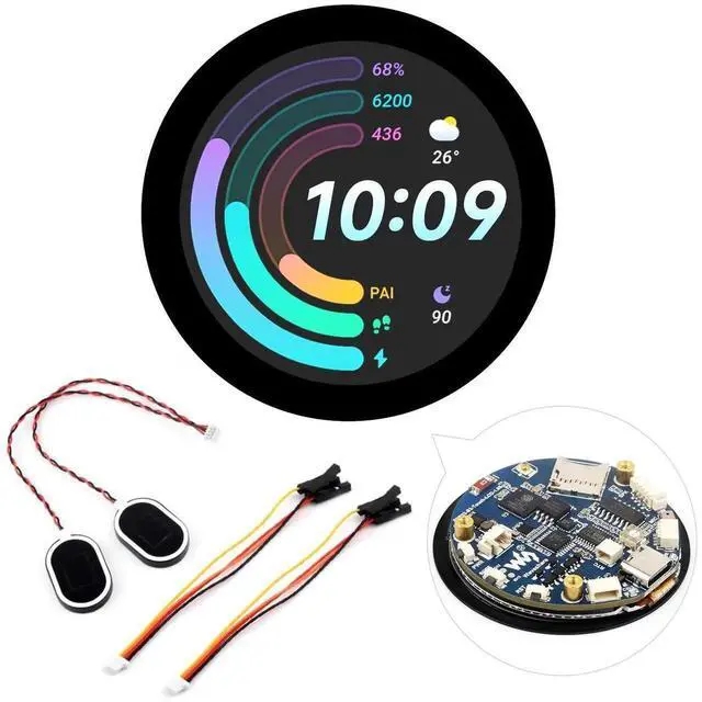 Waveshare ESP32-S3 1.85 inch Round Display Development Board 360×360, 32-Bit LX7 Dual-Core Processor, Up to 240MHz Frequency, Supports Wi-Fi & BLE 5, Accelerometer and Gyroscope Sensor, with Touch