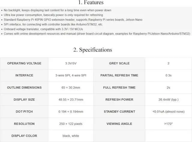 Waveshare 2PCS 2.13 inch E-Ink Display HAT V4 Version, Black/White Two-Color 250x122 Pixel E-Paper for Raspberry Pi 5/4B/3B+/3B/2B/Zero W/WH/Zero 2 W/Jetson Nano SPI Interface, Support Partial Refresh