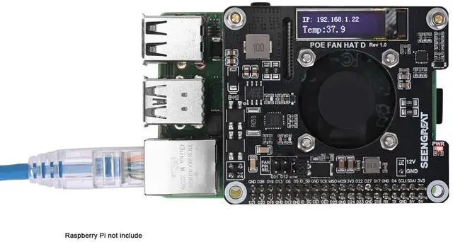 PoE Power Supply and Cooling HAT Board with OLED Display, Adjustable Fan, Fits Raspberry Pi 4B/3B+ POE HAT, Supports 802.3af/at Network Standards for Enhanced Heat Management