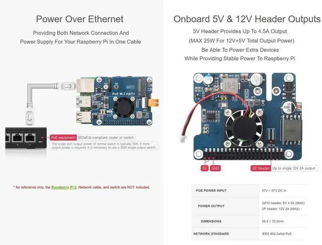 --Onboard 5V & 12V header outputs, 5V header provides up to 4.5A output (MAX 25W for 12V+5V total output power) be able to power extra devices while providing stable power to Raspberry Pi