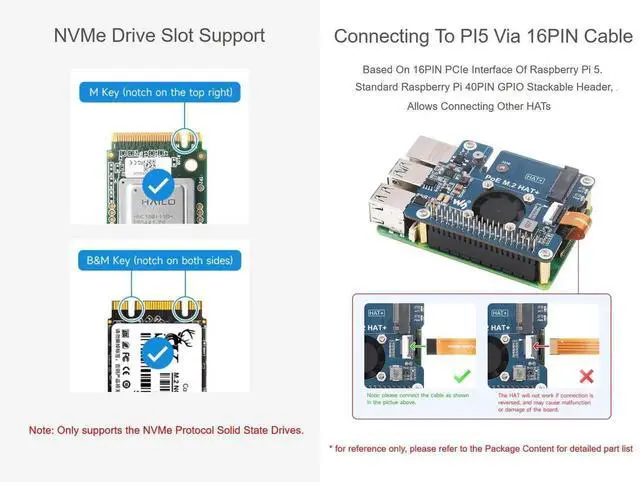 --Based on 16PIN PCIe interface of Raspberry Pi 5, suitable for Raspberry Pi 5 (not suitable for PI4B and PI3B), connecting to PI5 via 16PIN cable