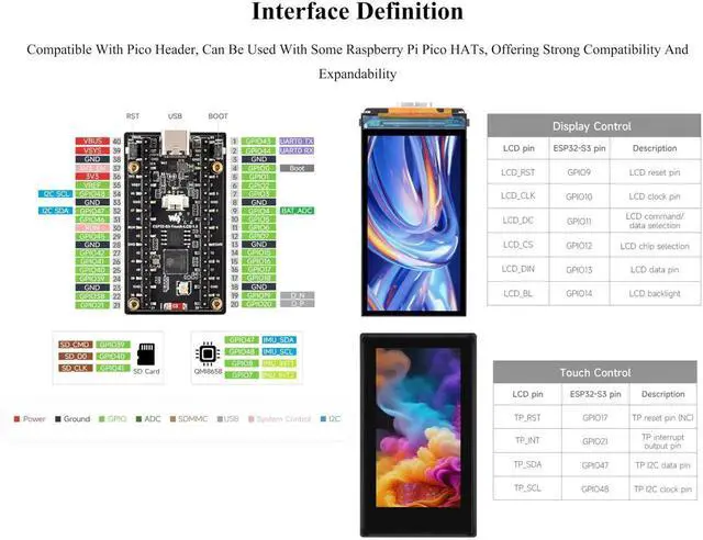 Compatible with Pico header, onboard multiple peripheral interfaces, offering strong compatibility and expandability.