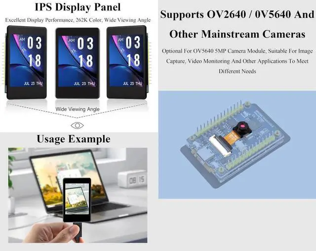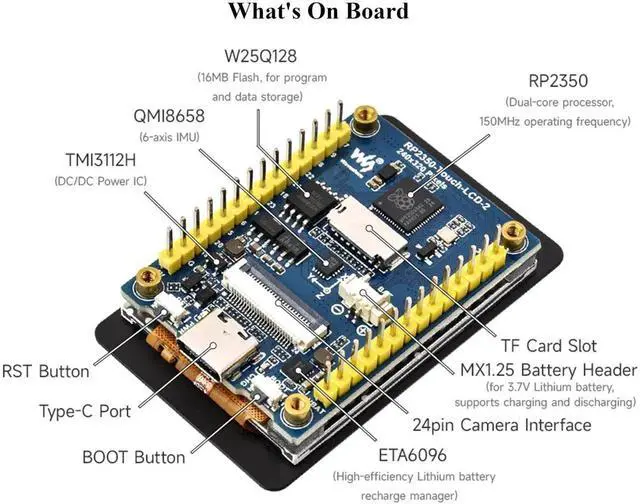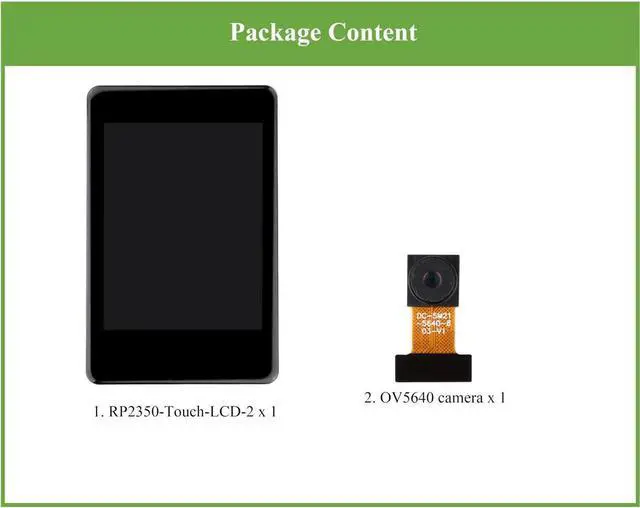 RP2350 2inch Capacitive Touch Display Development Board, 240x320 IPS LCD, 262K Color, 16MB Flash Memory, Onboard 6-Axis Sensor, GPIO Pre-Soldered Header, Type-C, etc. with OV5640 Camera Module