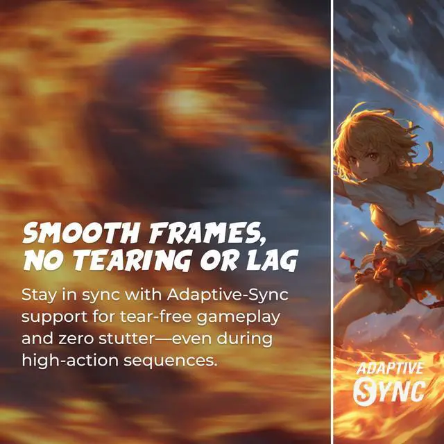 ADAPTIVE-SYNC SUPPORT: Say goodbye to screen tearing and input lag with Adaptive-Sync for fluid, uninterrupted performance across both AMD and NVIDIA GPUs.