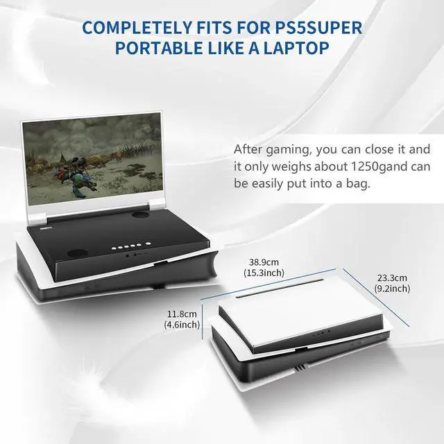 • Compact and Portable: Seamlessly matching PS5's shape and aesthetic, could be closed like a laptop when not in use.