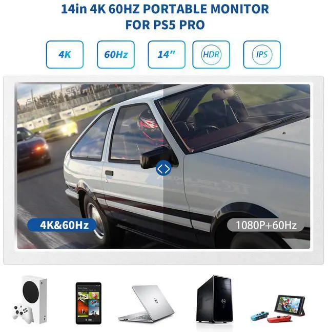 G-STORY 14" Inch IPS 4k 60Hz Portable Monitor Gaming Display Integrated with PS5 Pro(not Included) 3840×2160 with 2 HDMI Ports,FreeSync,Built-in 2 of Multimedia Stereo Speaker for P5 pro