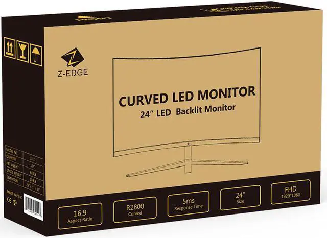 Z-EDGE Ultra-thin frame 24 inch 1080P 75Hz Curved Gaming Monitor, HDMI + D-Sub