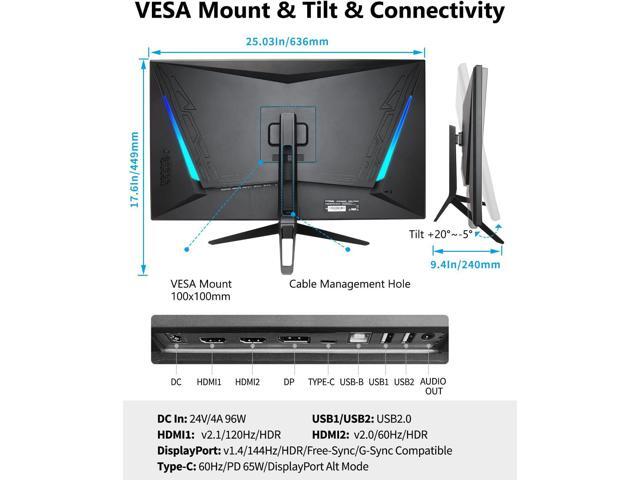 FYHXELE 28inch PC Monitor 4K UHD 144Hz IPS Panel LCD Display Flicker Free Low Blue Light Eye Protect G-Sync HDR Speaker HDMI 2.1 for PS5