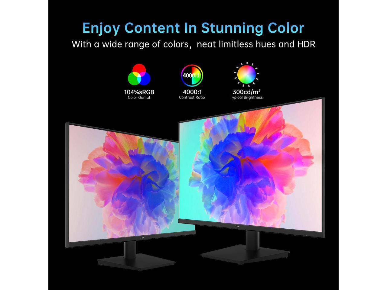 - Pleasant Colors With 104% sRGB, and 4000:1 contrast radio, our monitor shows clearer and more natural color display in a wide color gamut, you can see deep blacks.