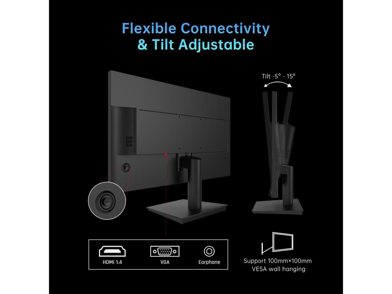 - Comfortable viewing Low blue light mode for reducing eye fatigue. 100 x 100mm VESA, -5° -15° tilt adjustment ,provide multiple options for finding the optimum angle of the monitor.