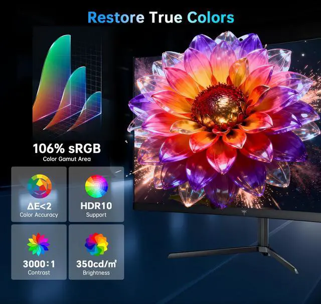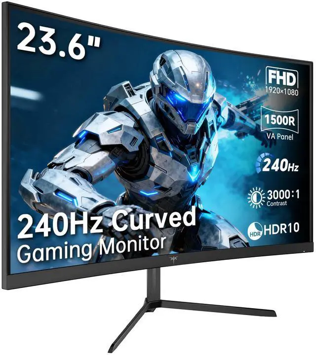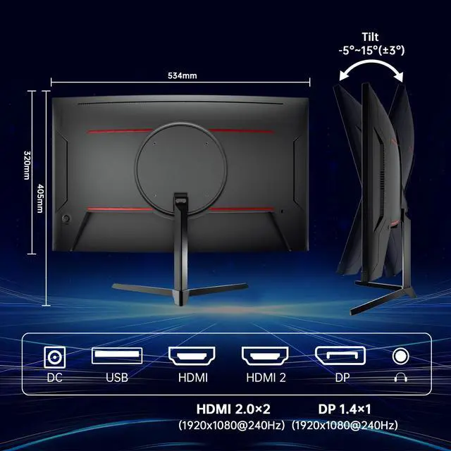 KTC 24 inch 1500R curved gaming monitor features FHD (1920×1080) resolution, ideal for both gaming and entertainment.240Hz refresh rate that gives you a competitive edge in games while delivering stunning clarity.It covers 106% sRGB color gamut area, offers 350cd/m² brightness, 16.7 million colors and 3000:1 contrast ratio to bring you a lifelike color experience. Flicker-free and low blue light technology reduce eye fatigue. Adaptive-Sync technology reduces screen tearing and latency to maintain sharp and clear image details. KTC 24-inch 240Hz curved monitor comes with multi-functional connectivity options including HDMI 2.0 and DP 1.4 ports, supports 100mm*100mm wall mounting, and offers -5° to 15° tilt adjustment for flexible placement.