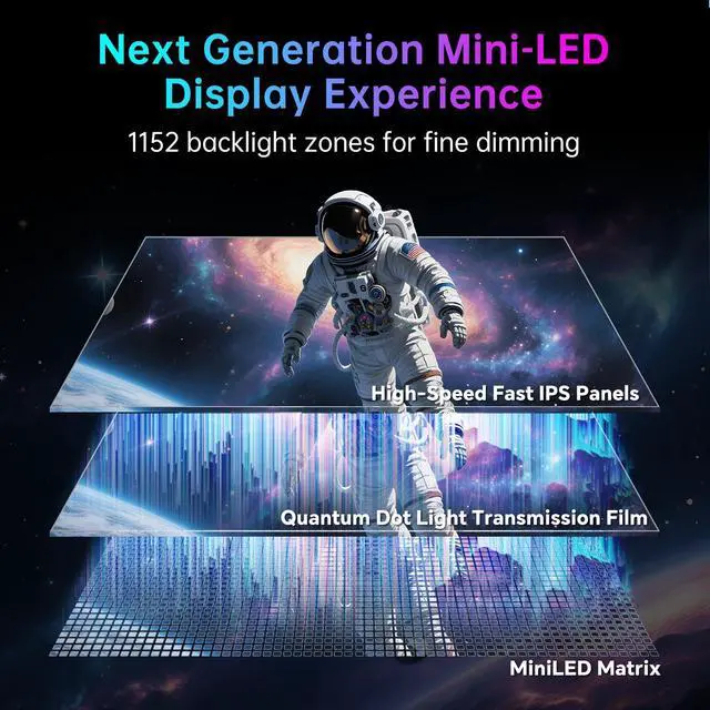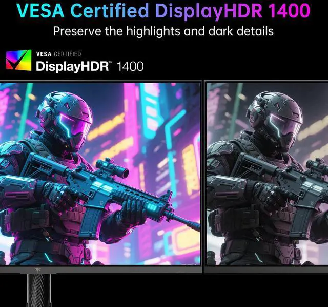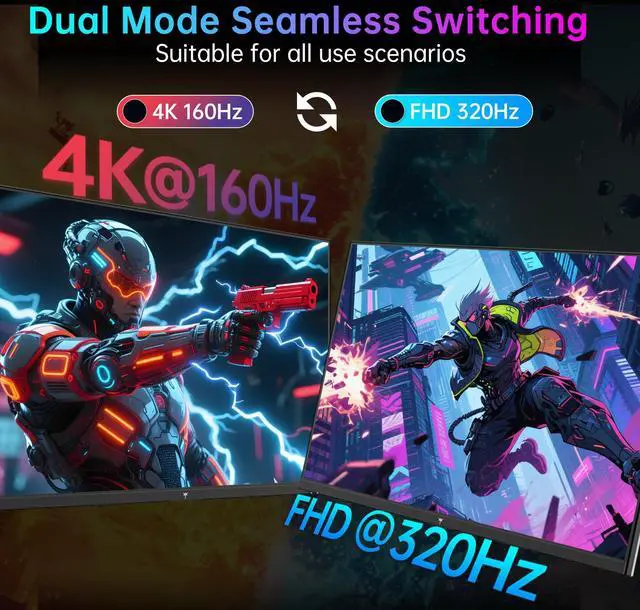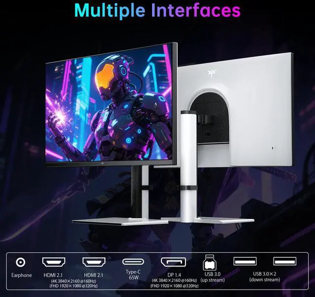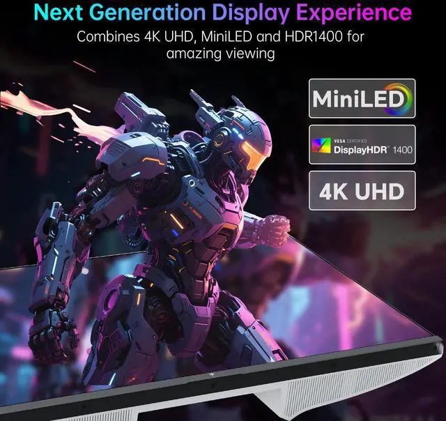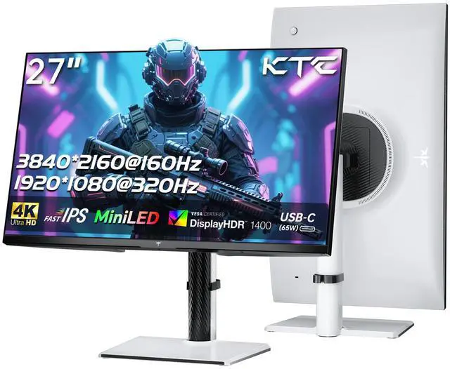 KTC 4K Mini LED Gaming Monitor M27P6 - 27 inch Fast IPS panel features MiniLED backlight technology(1152 zones local dimming), UHD 3840x2160P, 4K 160Hz or FHD 320Hz Dual Mode, 1ms, G-Sync & FreeSync compatible, gain an edge in any game with GAMEPLUS mode and easily adjust the display settings for an optimal viewing experience on demand. Experience true-to-life colors with Quantum Dot technology and HDR1400. The impressive 1000000:1 contrast ratio ensures deep blacks and bright whites, allowing you to see clearly even in the darkest or brightest scenes.type-c 65w, kvm support, tilt & swivel & height adjustable,VESA Mounting.