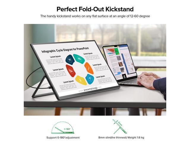- Slim & Portable Design: Ultra-slim at 0.2 inches, with a 180° adjustable kickstand and VESA compatibility. Easily use it as a second screen for laptops or phones.