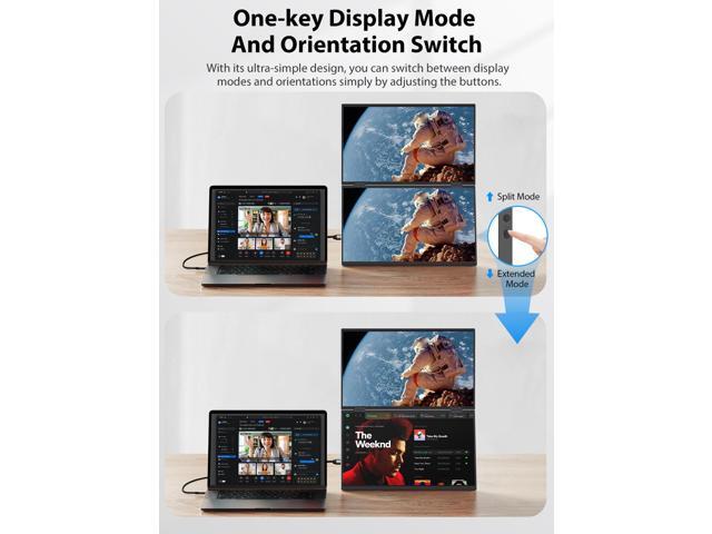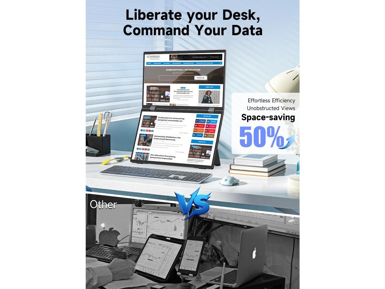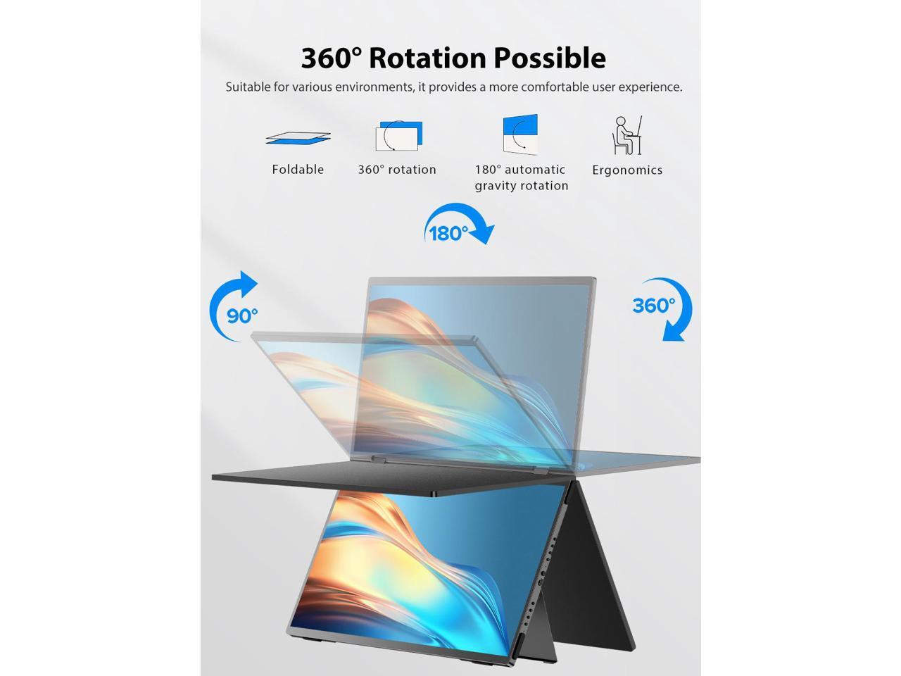 - 360° Versatile Folding: 0-360° rotation for easy screen sharing. Built-in gravity sensors enable 180° automatic rotation. Supports duplicate, expand, split, landscape, and portrait modes for flexible display options.