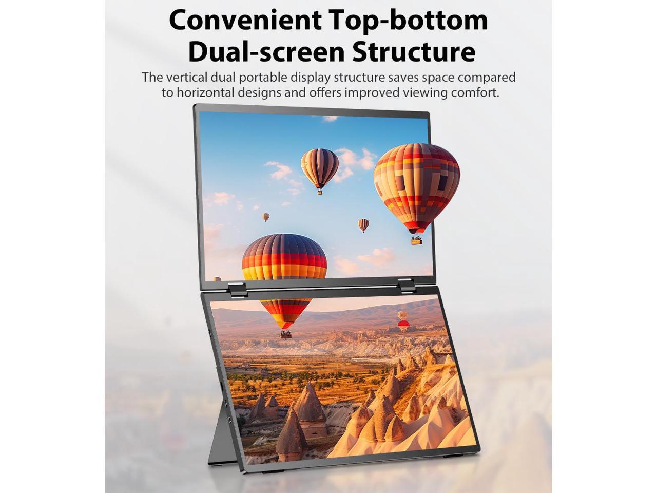 - Ergonomic Workspace Expansion: 15.6" dual stacked monitor doubles your visual area. IPS matte screen with 100% sRGB color gamut and E<2 ensures accurate colors. Anti-glare and flicker-free design reduces eye strain.