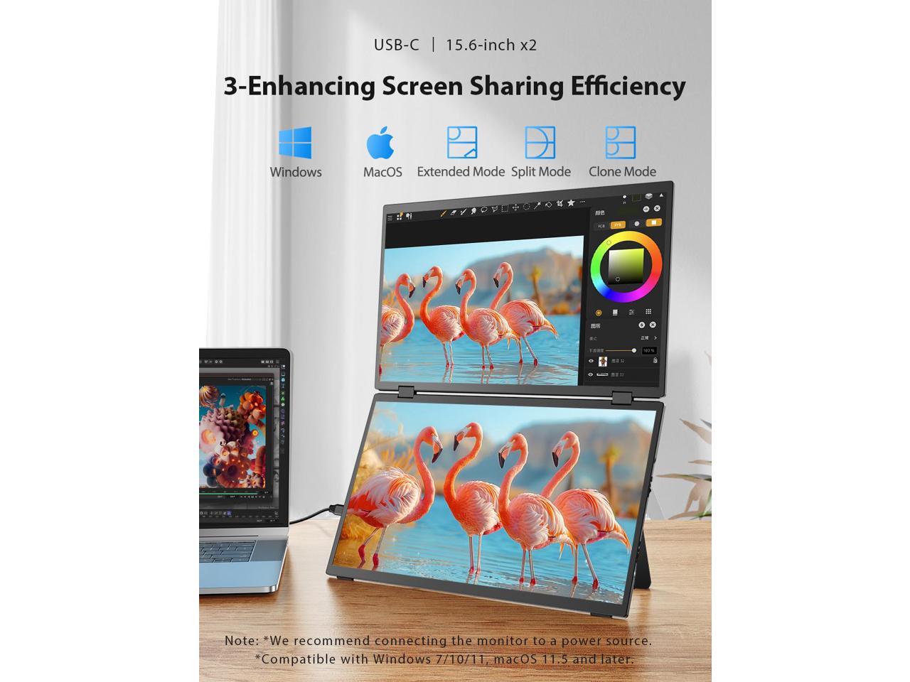 - Plug & Play Convenience: Driver-free dual-screen monitor connects with a single Type-C cable. No tedious driver installationsjust connect and enjoy seamless dual-screen display. (Tip: Connect power supply for optimal performance.)