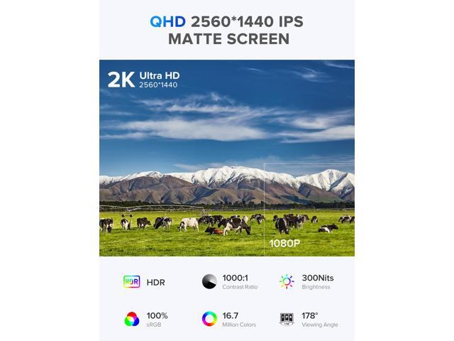 - 2K 8BITS CRISP VISUALS: The 22" large portable display with 2K resolution offers expansive and crystal-clear visuals, while its 300 nits brightness, 100% sRGB color gamut, and 1000:1 contrast ratio ensure vibrant, accurate colors and sharp, detailed images.