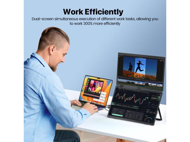 - Plug & Play Dual-Screen Innovation: The world's first driver-free dual-screen portable monitor. Simply connect with a Type-C cable and enjoy seamless dual-screen display without the hassle of installing drivers.