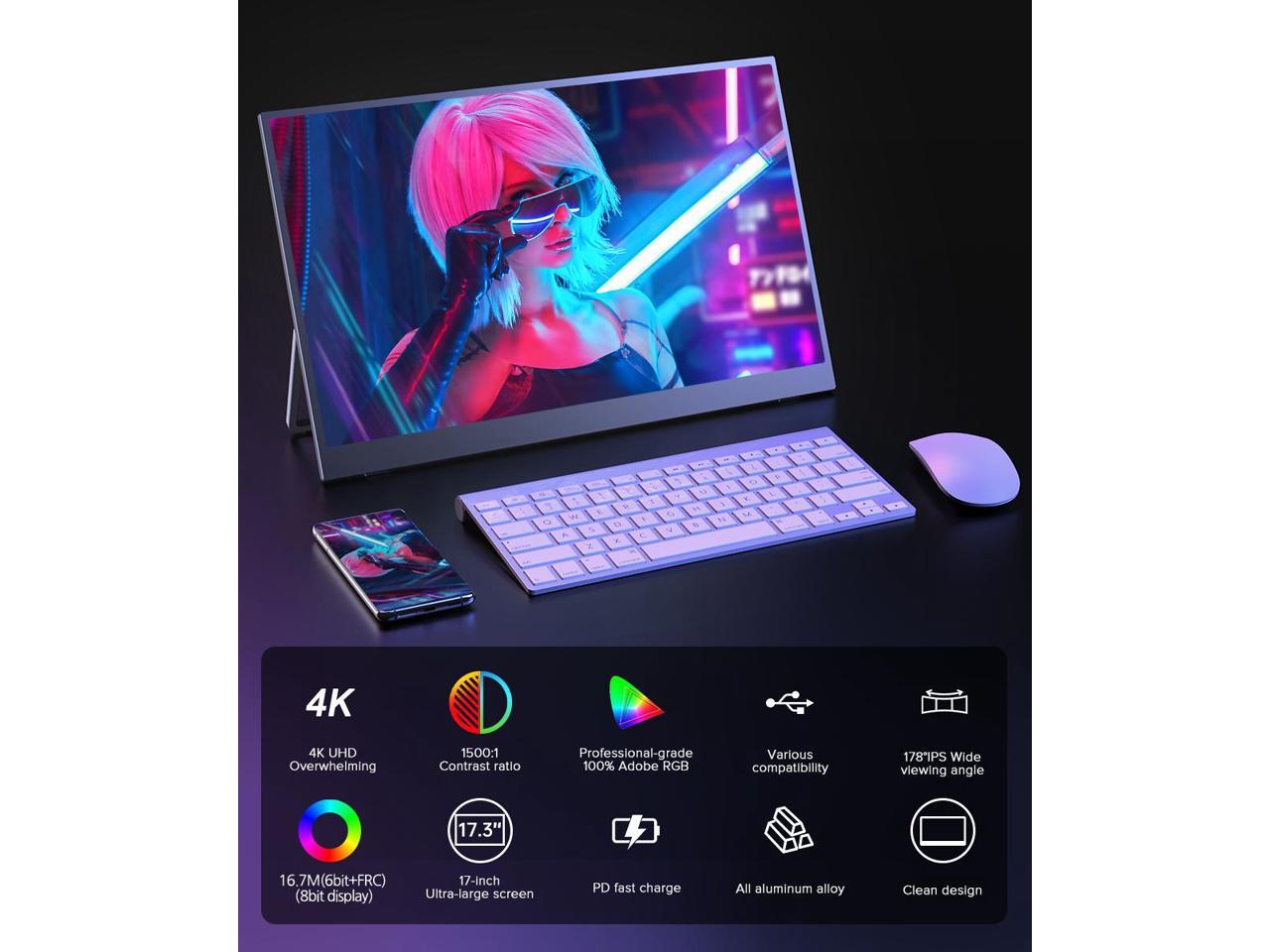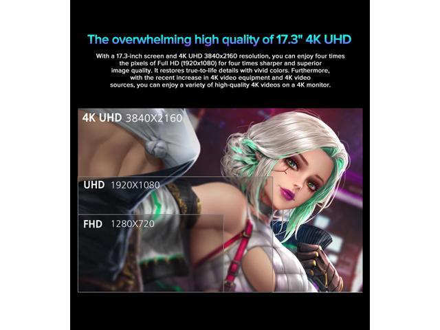 - UPERFECT Large 17.3'' 4K IPS Screen: The advanced 4K HDR monitor has a 17.3-inch 3840x2160 resolution screen with true 4K IPS panel technology, making it perfect for gaming, streaming and content creation.