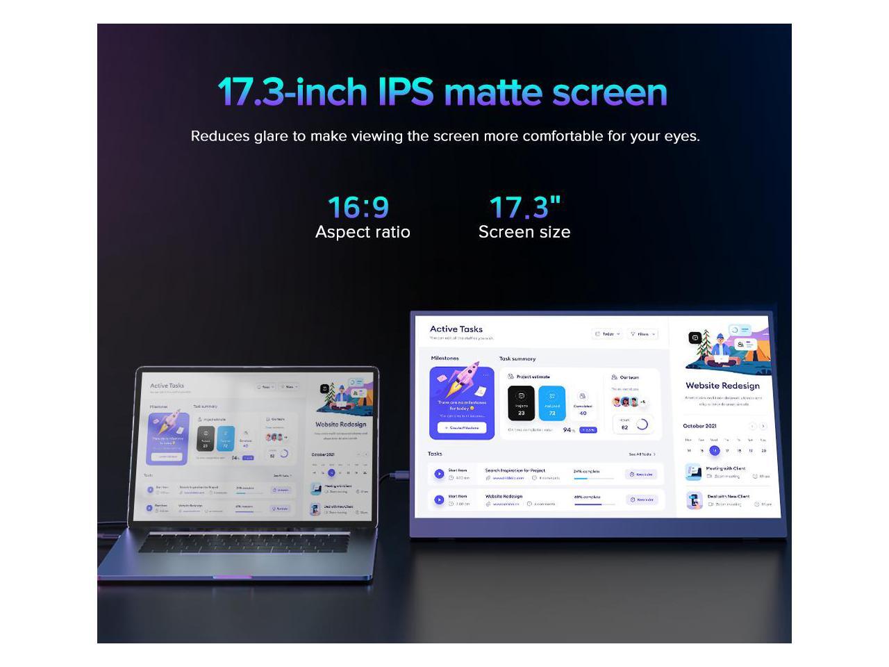 UPERFECT 17.3" 4K UHD Portable Monitor with 100% AdobeRGB, 500 Nits, FreeSync, HDR, Dual Type-C, HDMI, Eye Care, VESA, Smart Cover - For Laptops, PCs, Phones