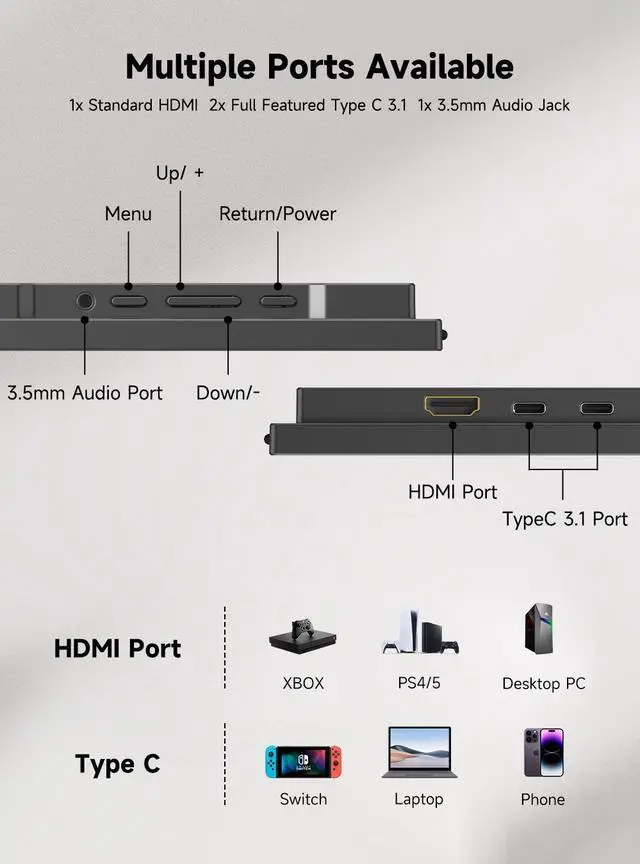 One-Cable Simplicity: HDMI & USB-C Plug and Play. Connect instantly to laptops, PCs, or gaming consoles with universal ports.