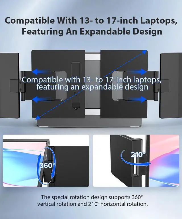 Features a unique hinge with 360° vertical and 210° horizontal rotation, plus gravity-sensing auto-rotation. Effortlessly adjust the height and angle for a perfect view. The screen is also detachable, enabling versatile single or dual-monitor setups to fit any task.