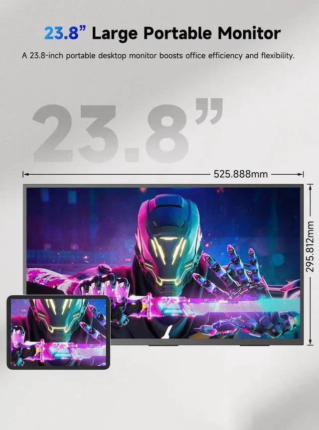 Spacious & Portable Display:Featuring a generous 23.8" screen, this portable monitor offers an expansive viewing area while remaining lightweight and easy to carry.