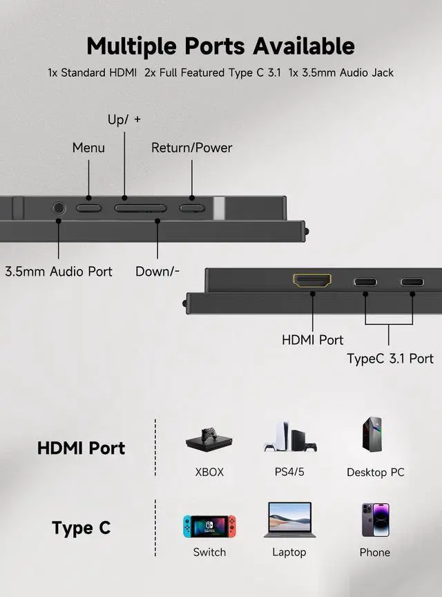 Universal Compatibility:Equipped with USB - C and HDMI ports, it works seamlessly with a wide variety of devices, from laptops, desktops, and MacBooks to tablets and gaming consoles like PS5, PS4, Xbox, and Switch.