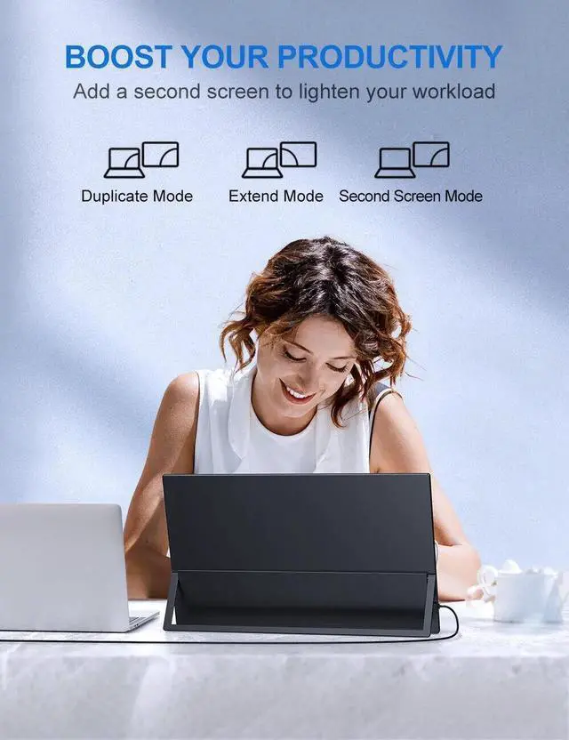 VESA& Kickstand IntegratedUPERFECT travel monitor features the slimmest 18.5-inch USB C monitor, 0.2in slim and only at 2.31lb weight.
