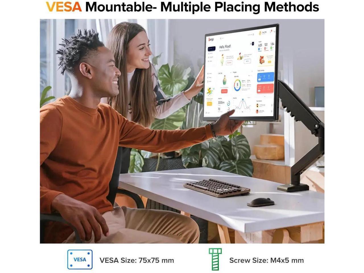 - Adjustable Stand and VESA Compatibility: Using a portable monitor with stand, can customize your viewing angle with the adjustable stand, allowing for a comfortable setup whether you're working or watching videos. Plus, VESA(M4*5mm) compatibility lets you mount the monitor easily on walls or adjustable arms for enhanced flexibility.