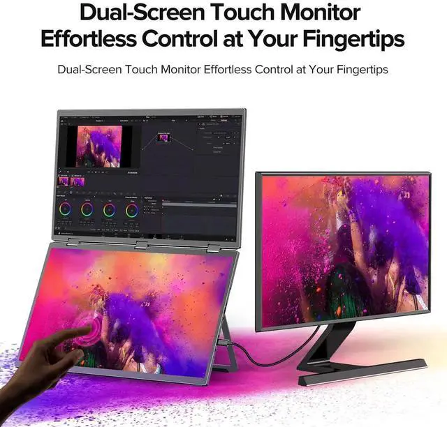 The world's first driver-free dual-screen portable monitor with touch functionality. Connect via a single Type-C cable and enjoy seamless dual-screen display without the hassle of installing drivers.